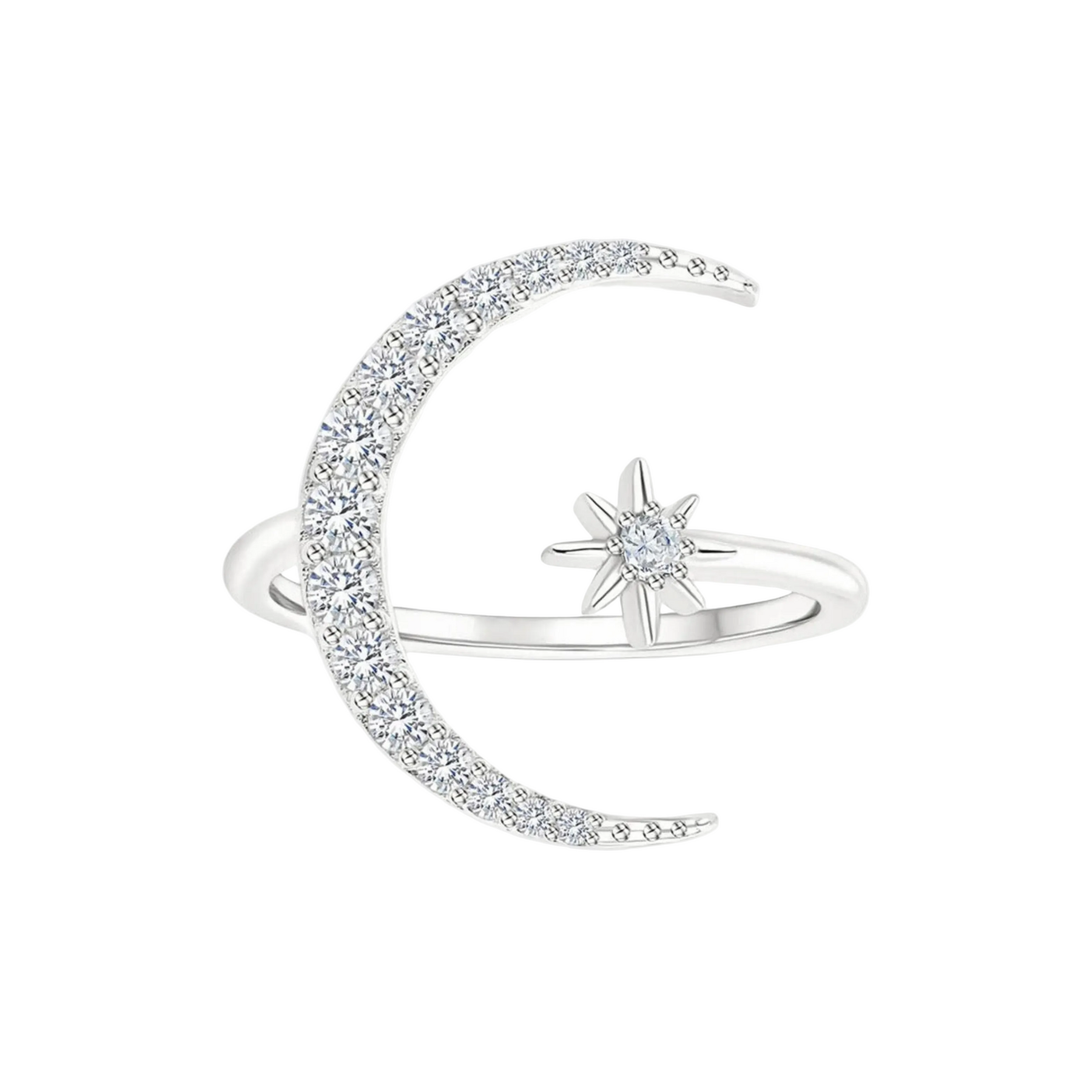 Moon and Star Silver Ring
